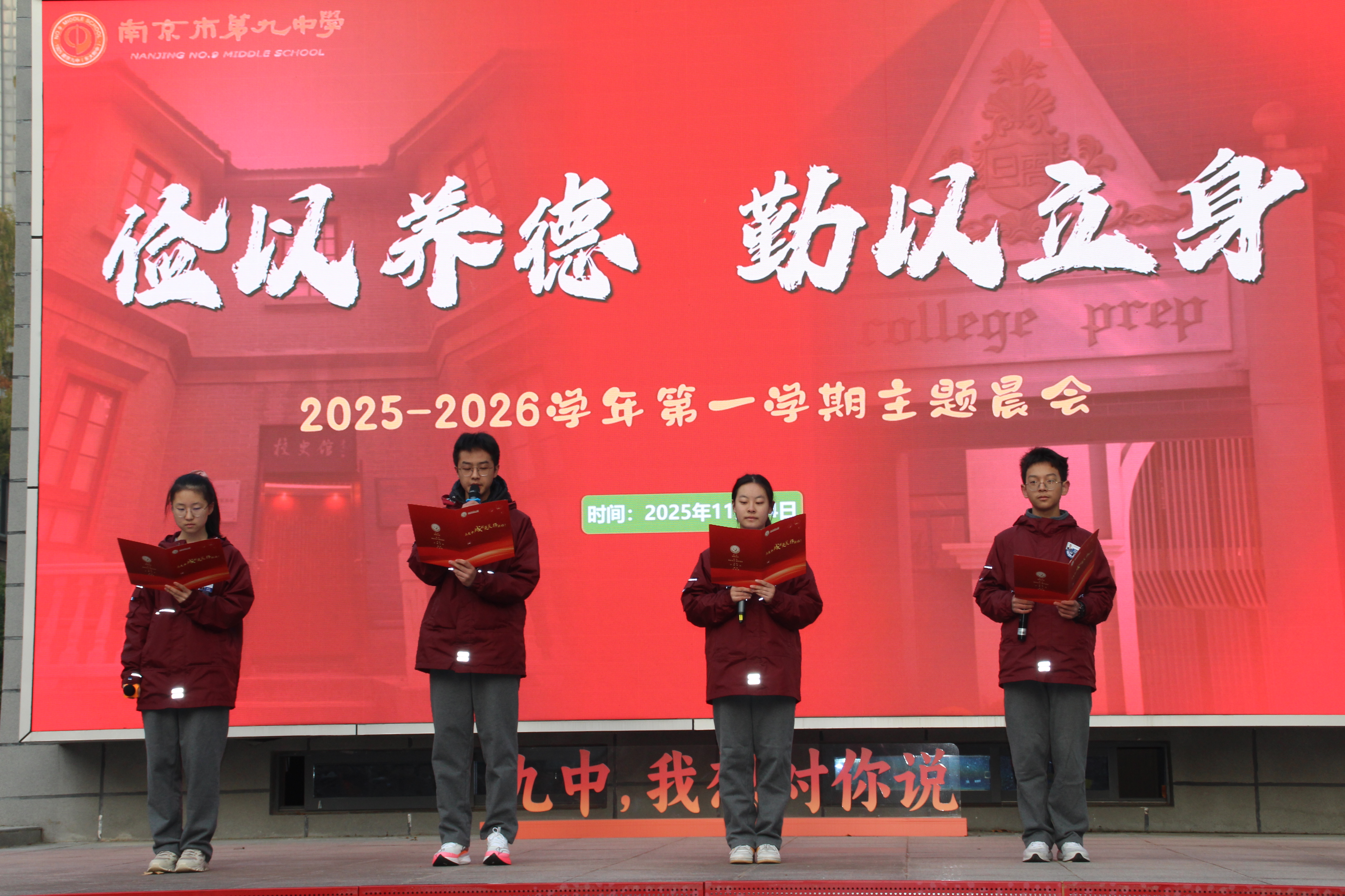 11月24日,南京市第九中学举行“节约资源”主题晨会,通过升旗仪式、主题倡议等形式,在校园内倡导勤俭节约的绿色风尚。