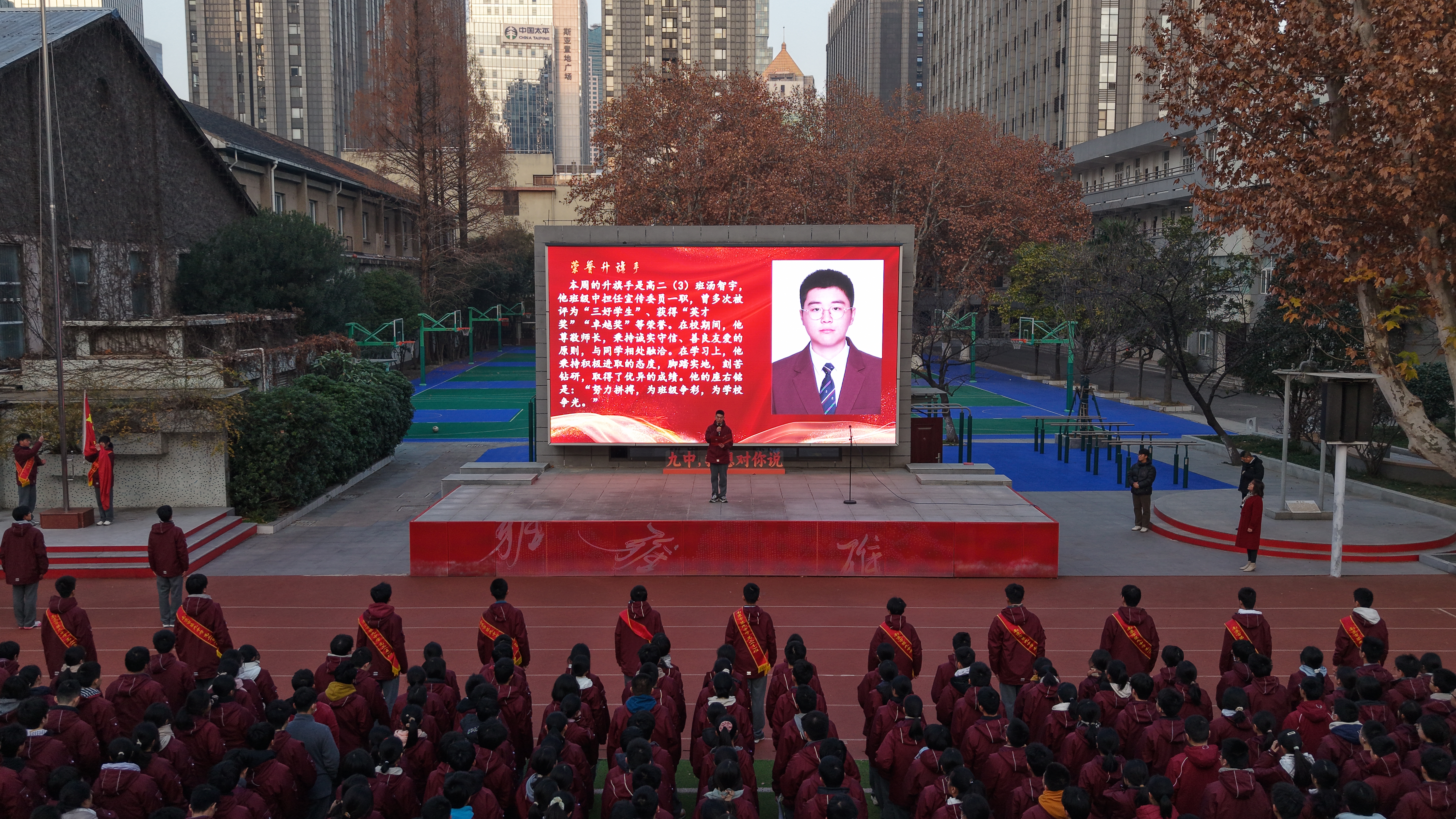 2025年12月29日,南京市第九中学举行辞旧迎新主题晨会,通过庄严的升旗仪式与校长新年致辞,回顾过往,展望未来,激励全体师生携手迈向崭新征程。
