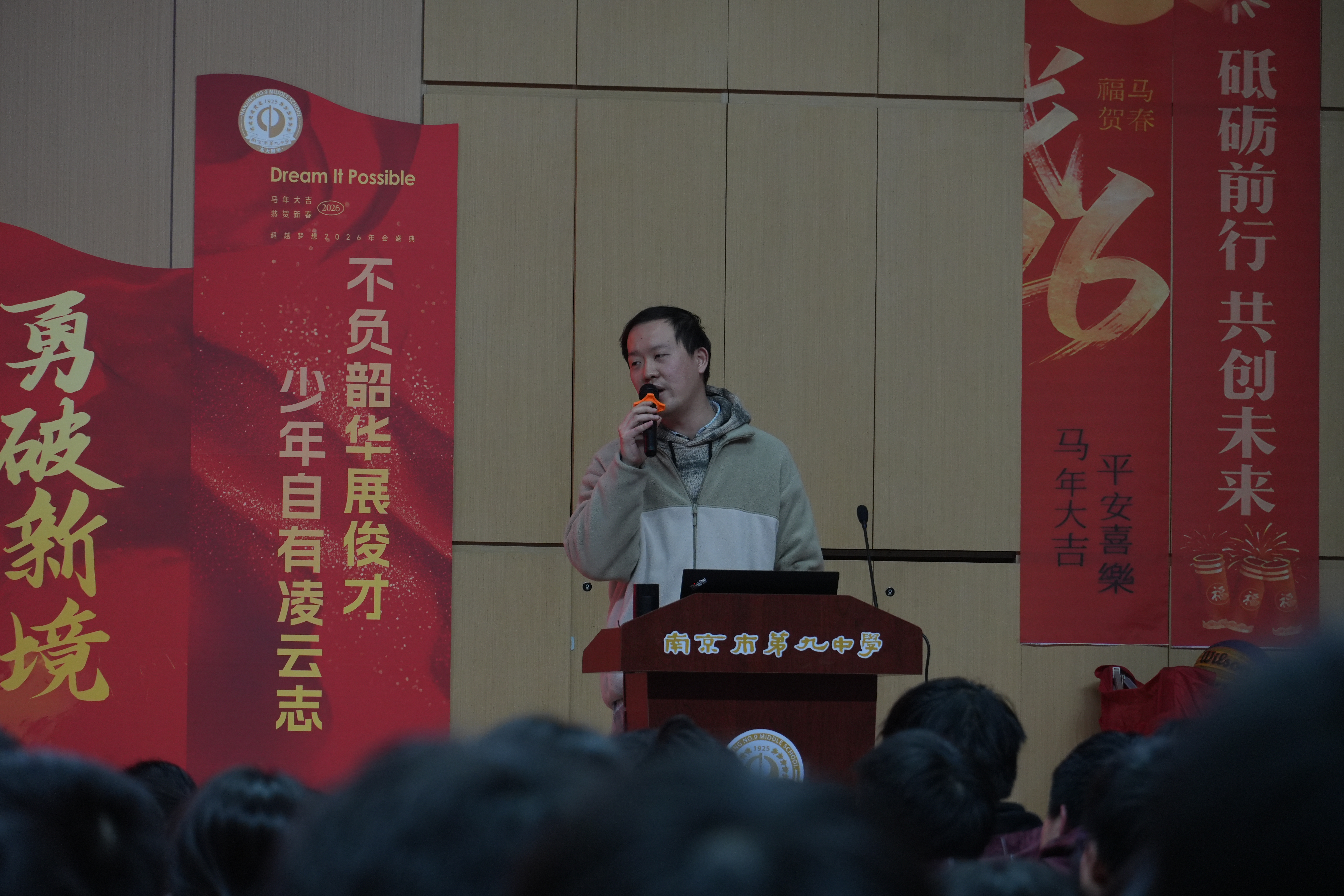 冬阳暖校园,奋进正当时。为总结阶段性学习成果、明确选科方向、部署期末备考工作,南京市第九中学长江路校区高一年级部于2026年1月12日隆重召开学生大会。全体师生齐聚现场,在庄重而热烈的氛围中,共话成长、共绘蓝图,为青春航向锚定坐标。