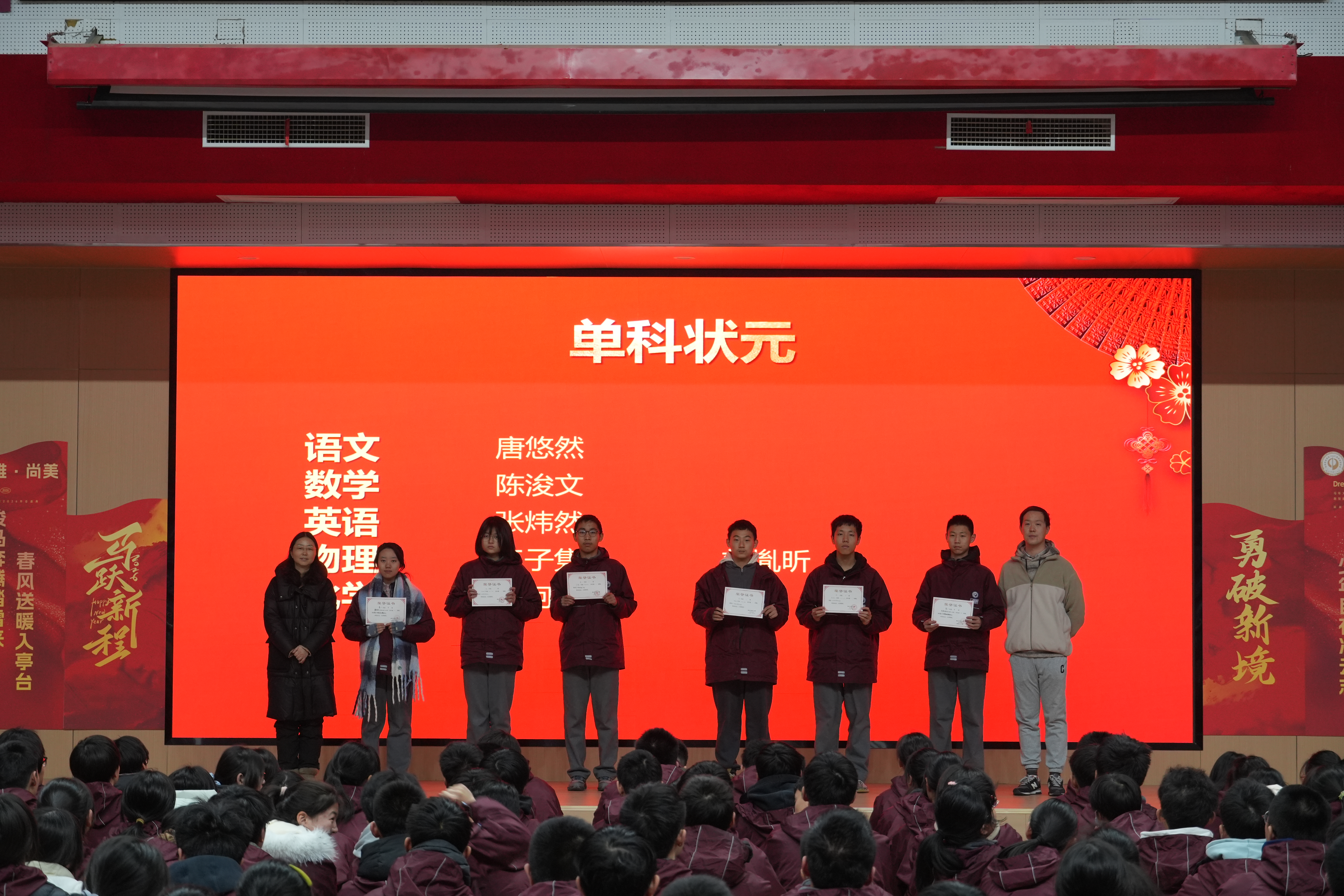 司璐璐副校长宣读月考中表现优异的学生名单,并对“菁英奖”“卓越奖”“优秀奖”“单科状元”“进步奖”获奖学生进行隆重表彰,为获奖同学颁发荣誉证书。