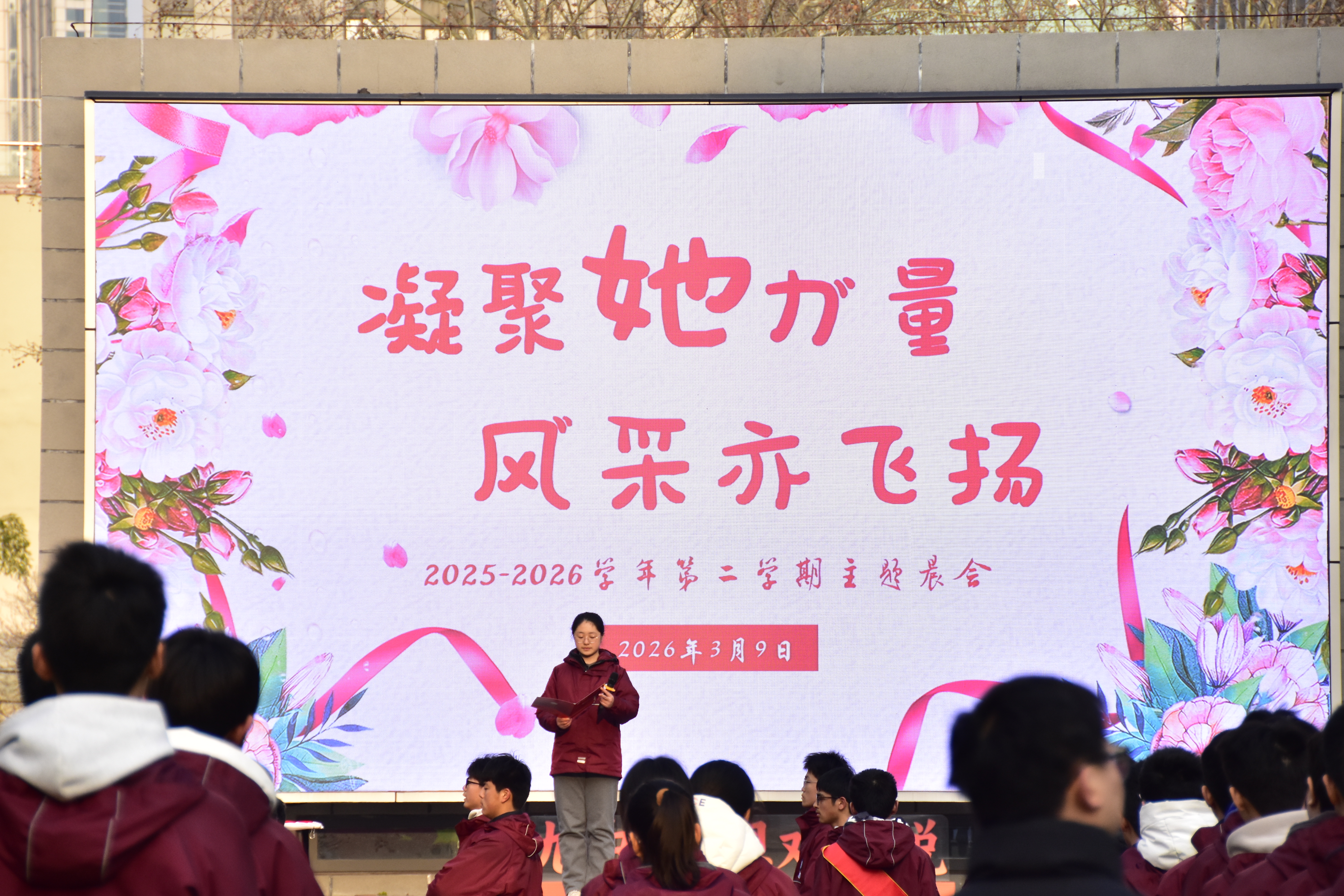 2026年3月9日清晨,南京市第九中学举行晨会,表彰2025年度“优秀巾帼奖”获得者。