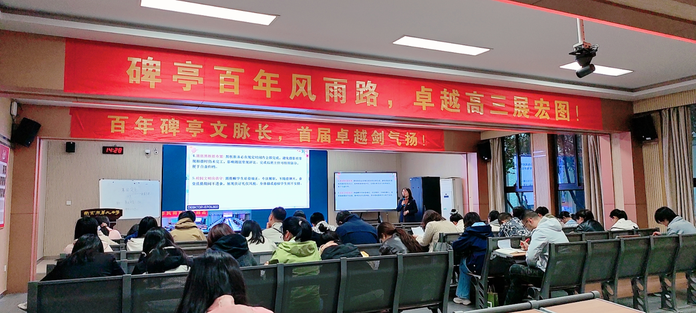 2026年4月22日,南京市第九中学召开2025-2026学年第二学期班主任工作会议,由德育处主任韩丽丽老师主持。会议围绕近期常规管理、德育工作推进及班主任经验分享展开,全体班主任及相关部门负责人参会。