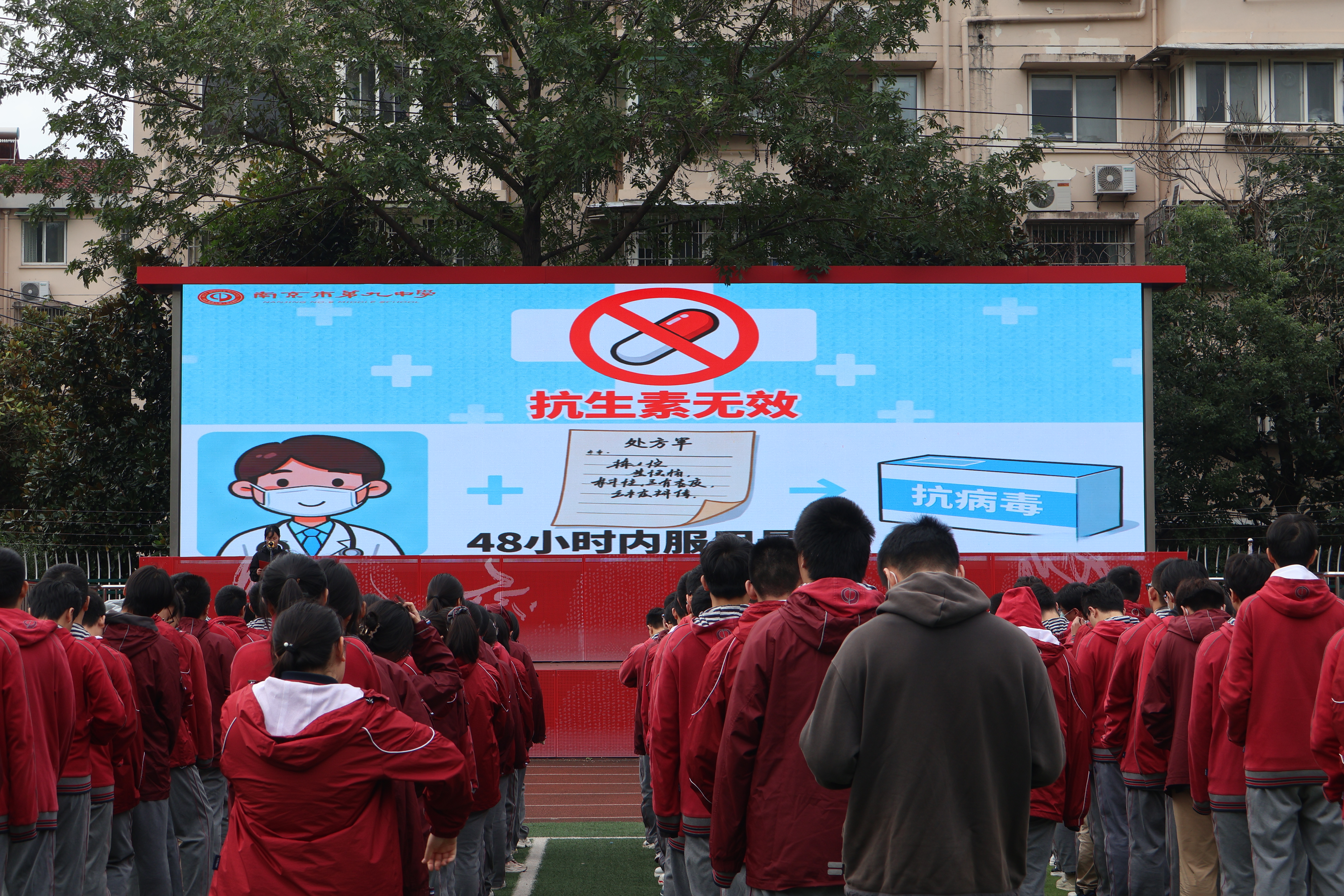 秋意渐浓,健康先行。2025年10月20日清晨,南京市第九中学全体师生齐聚操场,隆重举行了以“秋冬防传,守护健康”为主题的2025-2026学年第一学期主题晨会,旨在增强师生秋冬季节的疾病防控意识,共同守护校园健康防线。