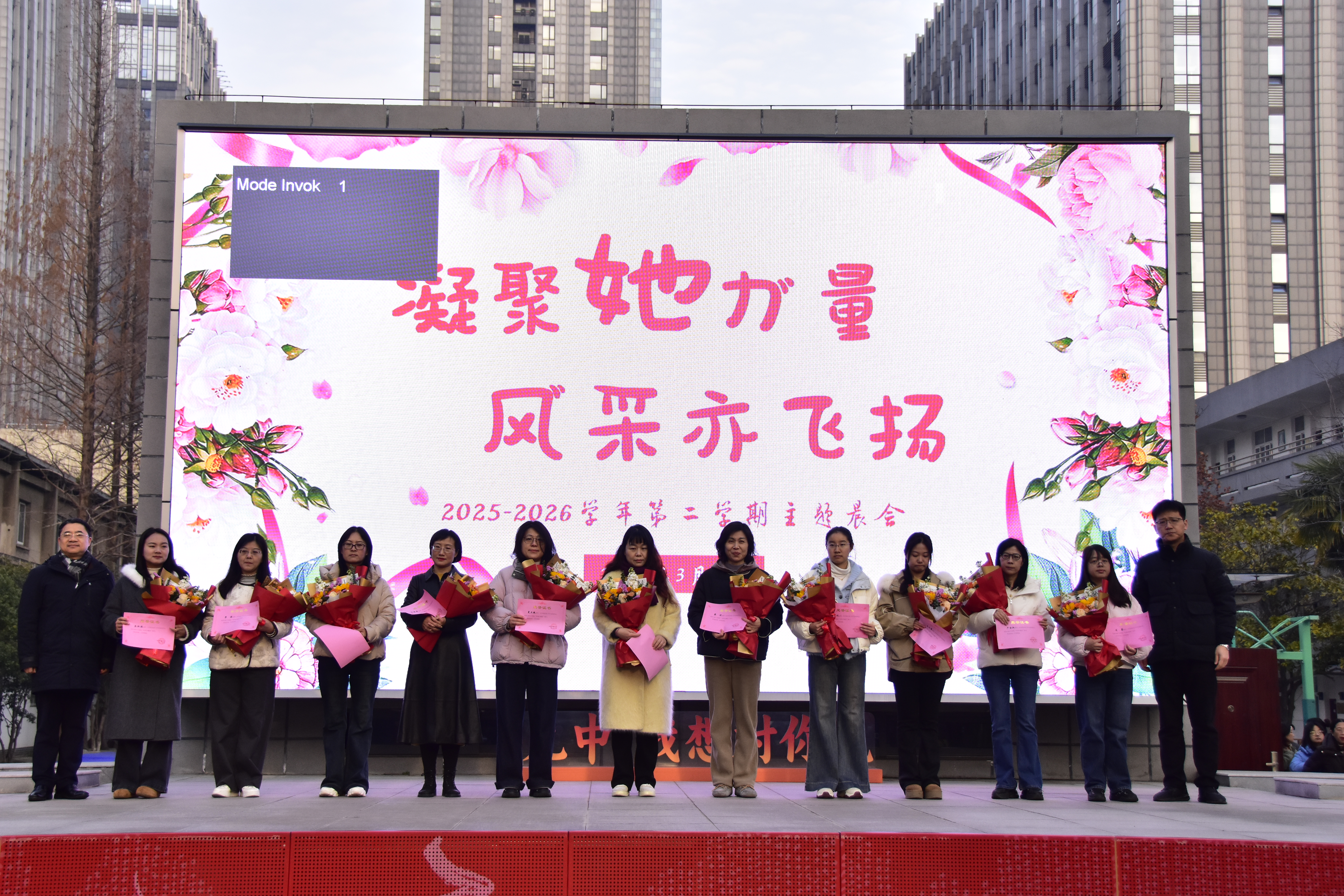 升旗仪式后,陈晓健校长和吴昊副校长分别宣读《南京市第九中学2025年度“优秀巾帼奖”表彰决定》。经各工会组民主推荐、党政工联席会研究,授予庄瑜璐、周佳、徐小艳、刘奕廷、朱蓓、佘晓丹、邓旭景、朱红珏、季源、王海棠、陆春芳、王红娟、罗丹、舒钟卫、夏正敏、倪凤、蔡洁、刘美仪、史文萱、严金淑、孙莎莎、曾嘉赟、蒋泽元、水自清、左蓉、陈珍年、聂振荣、唐姝、孙欢、都海英、刘金里、方琴、王秀林、储昭阳等34名女教工2025年度“优秀巾帼奖”称号。