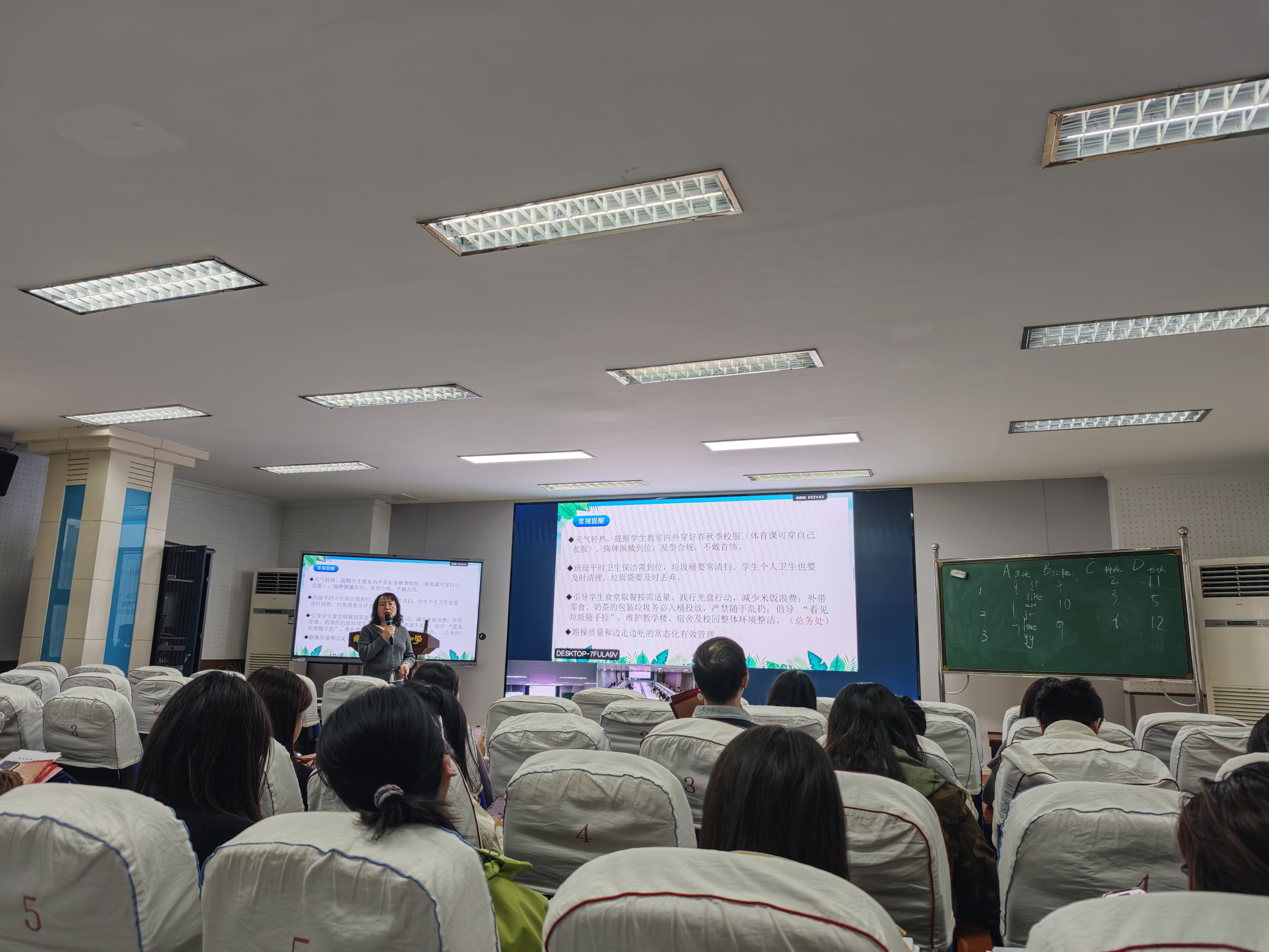 会议伊始,韩主任对常规管理作出提醒:天气转热,要求学生规范穿着校服、佩戴胸牌;班级卫生保洁到位,食堂取餐践行光盘行动,外带包装垃圾入桶,倡导“看见垃圾随手捡”;跑操质量和“边走边吃”现象需常态化管理。