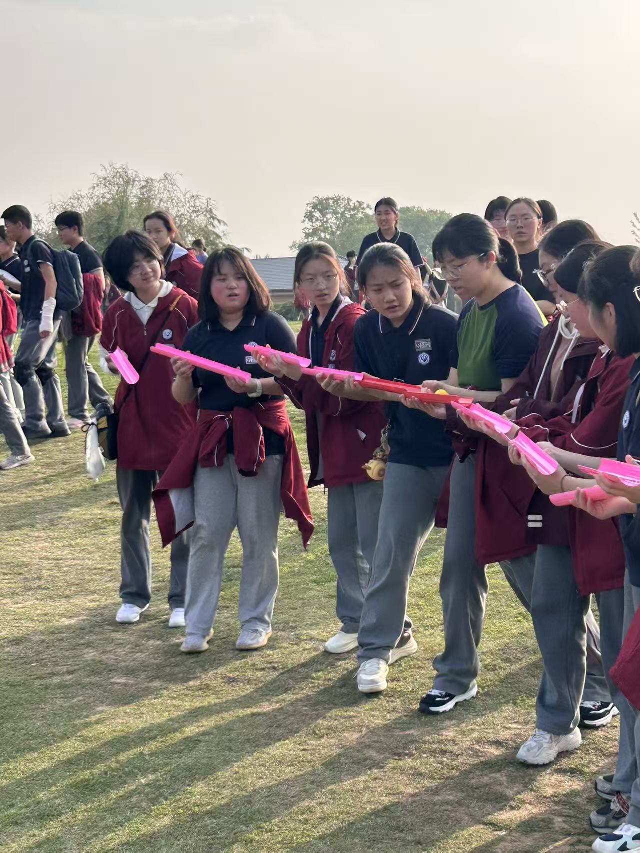 抵达钟山体育公园时,同学们迎来体力与意志的双重挑战。“默契小挑战”“球跨万里” 等团体项目,需要全员同心协力、谨慎配合。尽管汗水浸湿衣衫、脚步渐显沉重,但无一人退缩、无一人掉队。完成挑战后,象征坚韧与团结的紫藤贴纸被郑重贴上纪念册,“紫藤・聚力” 的精神烙印在每位同学心中。